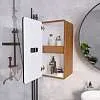 • Материал корпуса и фасада шкафчика под дерево – МДФ, покрытый пленкой ПВХ, а фиксированная полка-перегородка из влагостойкой ЛДСП. Благодаря этому пенал сохранит первозданный вид в условиях повышенной влажности.