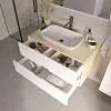 • Подвесной тип крепления облегчает уборку и визуально расширяет пространство. Интегрированные ручки становятся стильным дополнением тумбы.