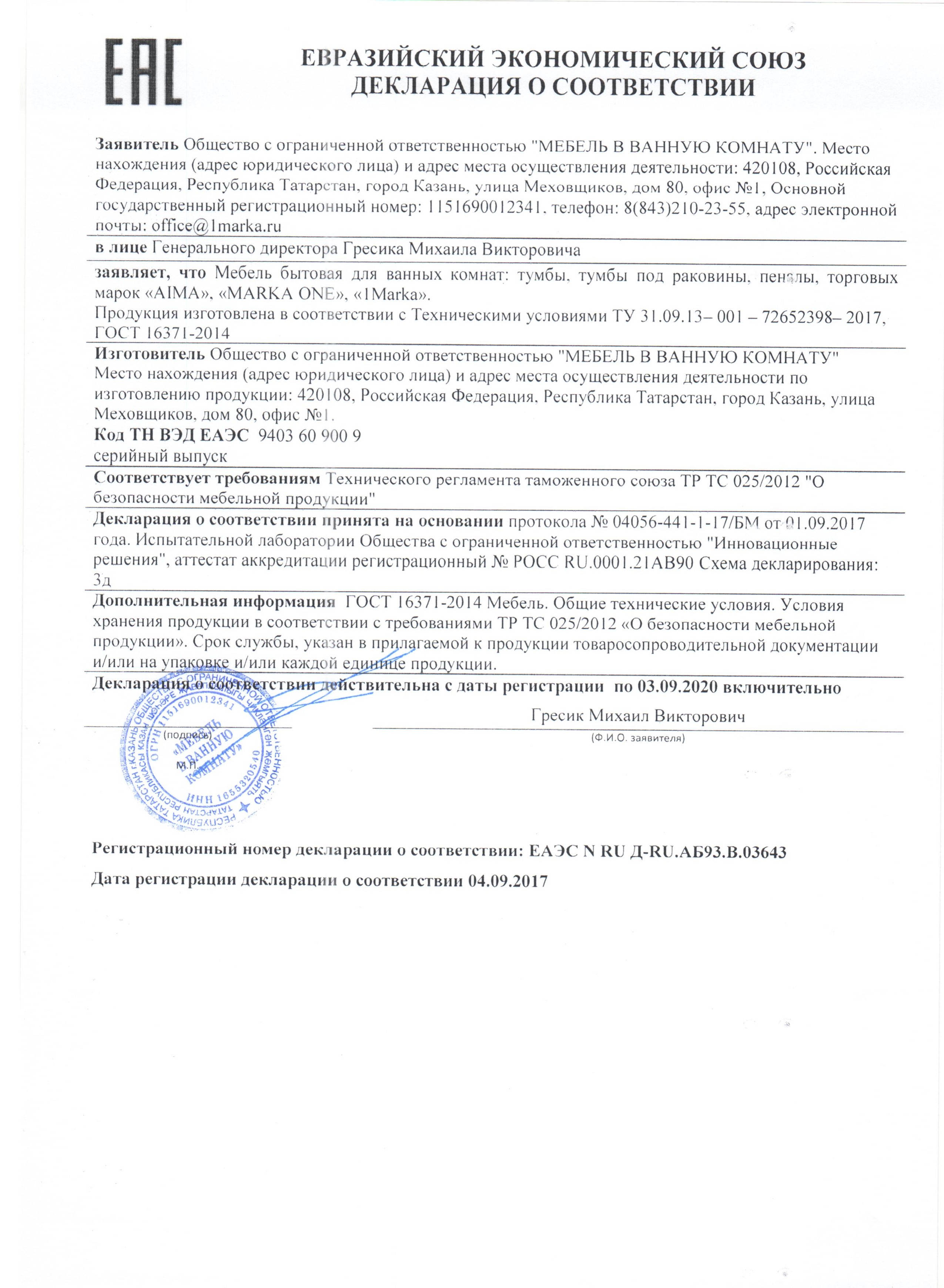 • Декларация о соответствии