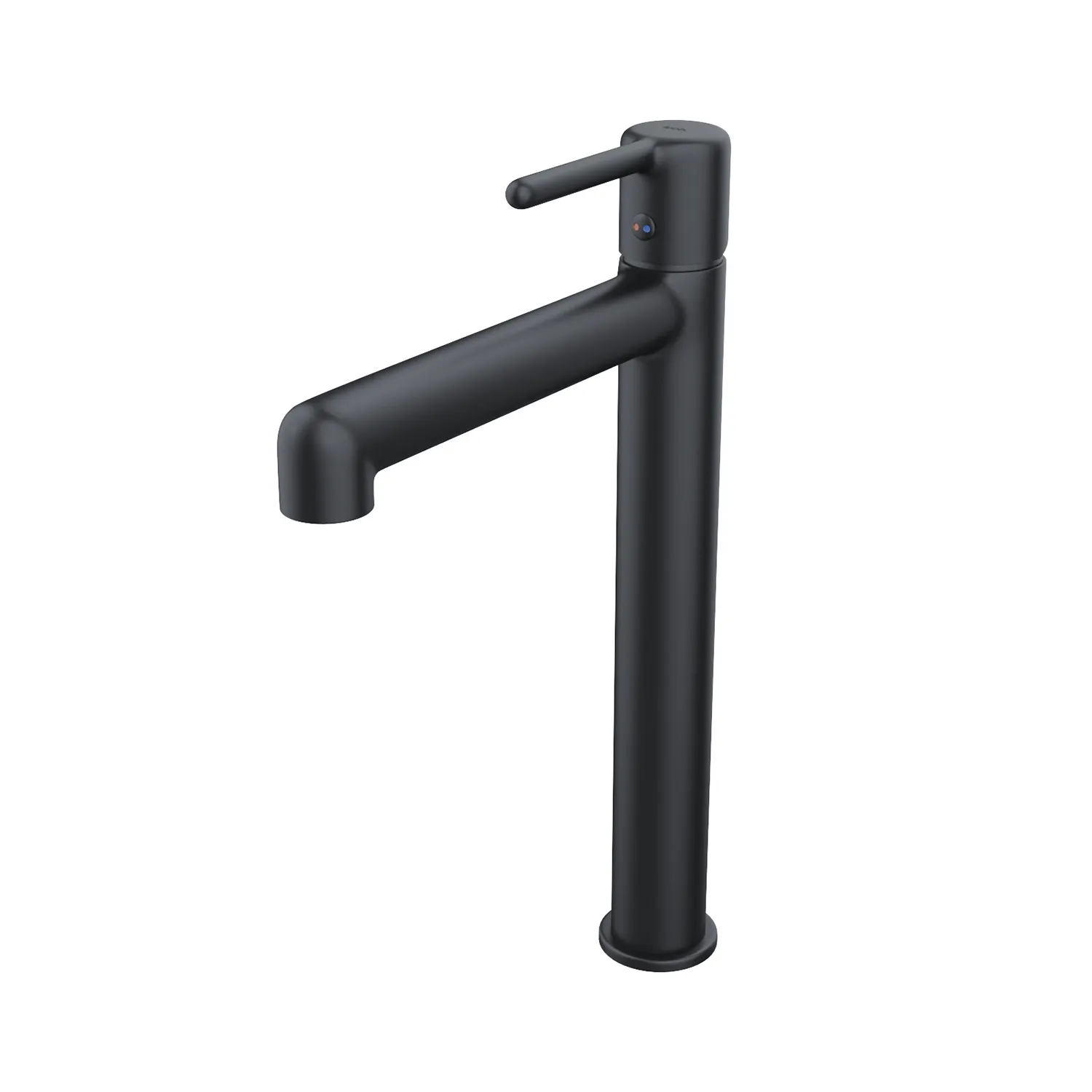 Стильный высокий смеситель для настольного умывальника удачно сочетает актуальный современный дизайн и популярный черный цвет. Удлиненная ручка добавляет смесителю изящества и комфорт в управлении. Расстояние между ручкой и изливом увеличено для большего удобства.