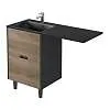 Тумба под раковину* и стиральную машину Maid – элегантное и функциональное решение, она создает гармоничное пространство в ванной комнате. Искусное сочетание антрацита и "ореха лучистого европейского" придает тумбе изысканный вид, а два вместительных ящика помогут легко организовать порядок. Акцентные опоры  черного цвета гармонично дополнят ваш выбор: строгая графитовая или нежная белая раковина – для создания неповторимого стиля ванной комнаты.