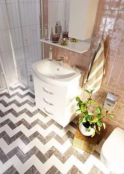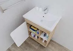 • Функциональность: Вместительный ящик грамотно организует хранение ванных принадлежностей.