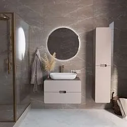 Практичная тумба с многофункциональной конструкцией. Практичная ручка закрывающегося шкафчика может использоваться как держатель для небольших полотенец. Лаконичная конструкция и минималистичный дизайн без лишних деталей делают эту тумбу подходящей для интерьера ванной комнаты в любой стилистике. Она будет одинаково уместна как в классических сдержанных пространствах, так и в современных или даже эклектичных комнатах, оформленных на стыке разных стилей.Характеристики:
