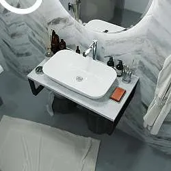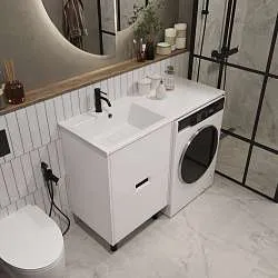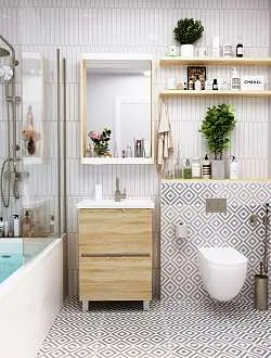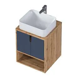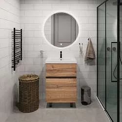 Тумба в стиле лофт, покупка которой решает сразу несколько важных вопросов в функциональном оформлении ванной комнаты. Ее дизайн построен на гармоничном сочетании дерева и металла: корпус с естественной фактурой дерева дополнен металлическими кронштейнами, которые также могут использоваться в качестве рейлов для размещения полотенец и халатов. Выдвижной ящик без ручки, открывающийся одним простым нажатием, разделен на несколько отсеков для удобства организации процесса хранения. Также тумба предполагает свободное пространство для размещения косметики и предметов декора.Характеристики: