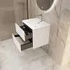 Белая подвесная тумба под раковину* Monа – минималистичная модель, созданная по актуальным тенденциям мебели для ванной. Тумба в ванную Monа — не просто элемент мебели, а символ гармонии и порядка в пространстве ванной комнаты. Она напоминает о важности баланса между красотой и функциональностью.