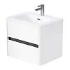 Матовый фасад, интегрированные ручки, керамическая раковина* с широкими бортами и полки в трендовом графитовом цвете придают интерьеру строгость, изящность и подчеркивают его уникальный характер. А белый цвет делает тумбу подходящей для большинства интерьеров ванной комнаты.