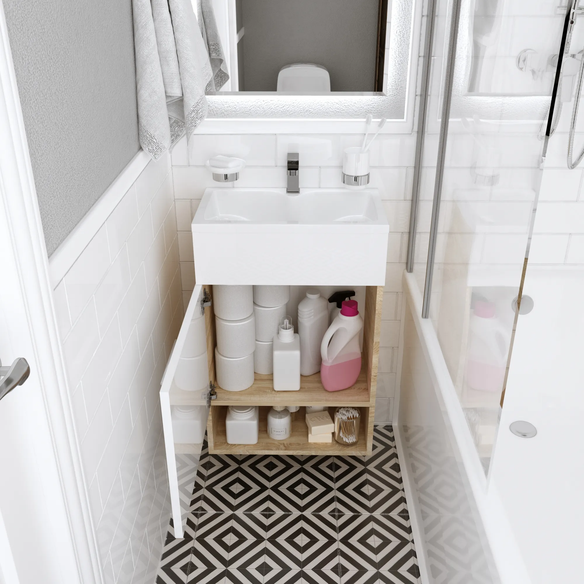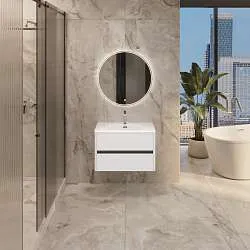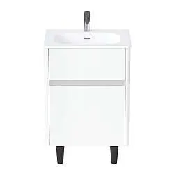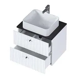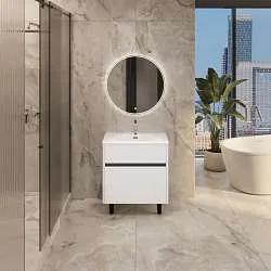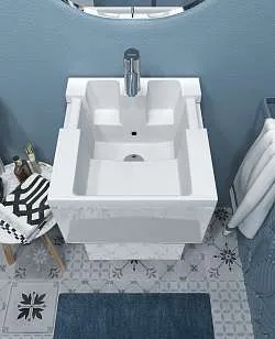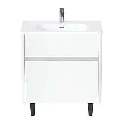 Практичная и доступная модель, качество которой многократно превышает ее стоимость. Лаконичные формы, отсутствие лишних деталей, фурнитура в виде функциональной ручки, которая может использоваться как держатель для полотенец, а также всегда актуальный и востребованный цвет делают ее настоящим универсалом, уместным в ванной комнате любых размеров, габаритов и цветового оформления. Две полки разной высоты позволяют с удобством разместить даже габаритные предметы, а продуманная конструкция раковины предотвращает расплескивание и другие проблемы с эксплуатацией.